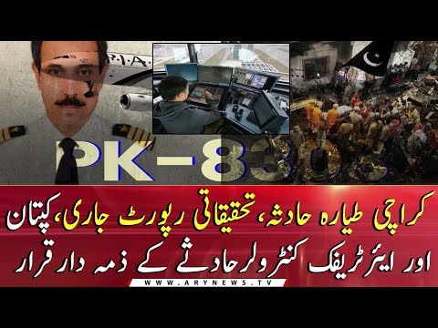 The investigation report of the PIA plane 8303 crash in Karachi has been submitted to the Prime Minister in which the pilot and the air traffic controller have been held responsible for the accident.